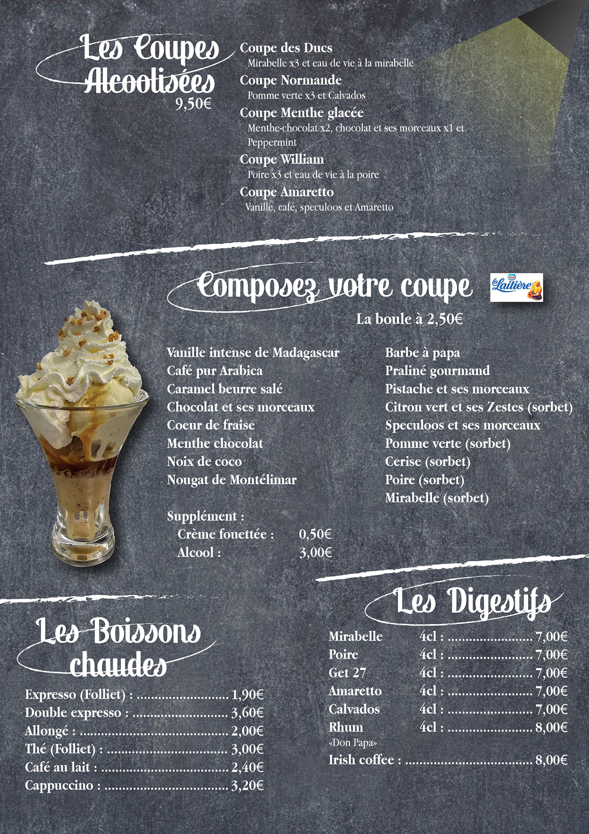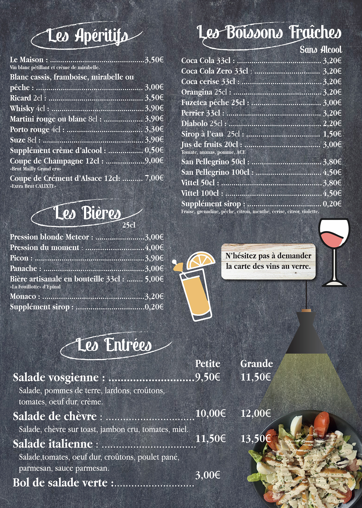 Découvrez également sur place notre carte des vins, une belle sélection dont le célèbre vin Italien Lambrusco