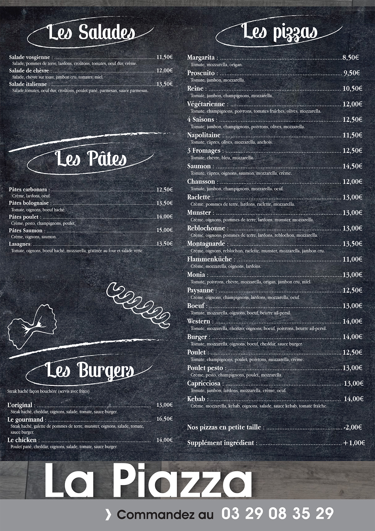 Retrouvez tout le plaisir de la gastronomie à l’italienne avec les pizzas, pâtes, burgers, salades et autres saveurs chez vous…